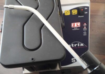 Posiadane urządzenie Matrix SV8 to profesjonalne urządzenie do dezynfekcji parą wykorzystujące do pracy parę pod ciśnieniem aż 8 bar przy temperaturze powyżej 160 stopni. Dzięki wysokiej temperaturze, można nawet w kilka sekund całkowicie wyeliminować wszystkie szkodliwe dla zdrowia drobnoustroje. Im lepsze parametry urządzenia (ciśnienie robocze i temperatura pary), tym lepsze efekty dezynfekcji – para aplikowana na powierzchnię materaca czy tapicerki pod ciśnieniem 8 atmosfer jest w stanie wniknąć bardzo głęboko w jego strukturę i dotrzeć do roztoczy znajdujących się w jego wnętrzu. Styk pary z dezynfekowana powierzchnią jest chwilowy, trwa maksymalnie kilka sekund.
